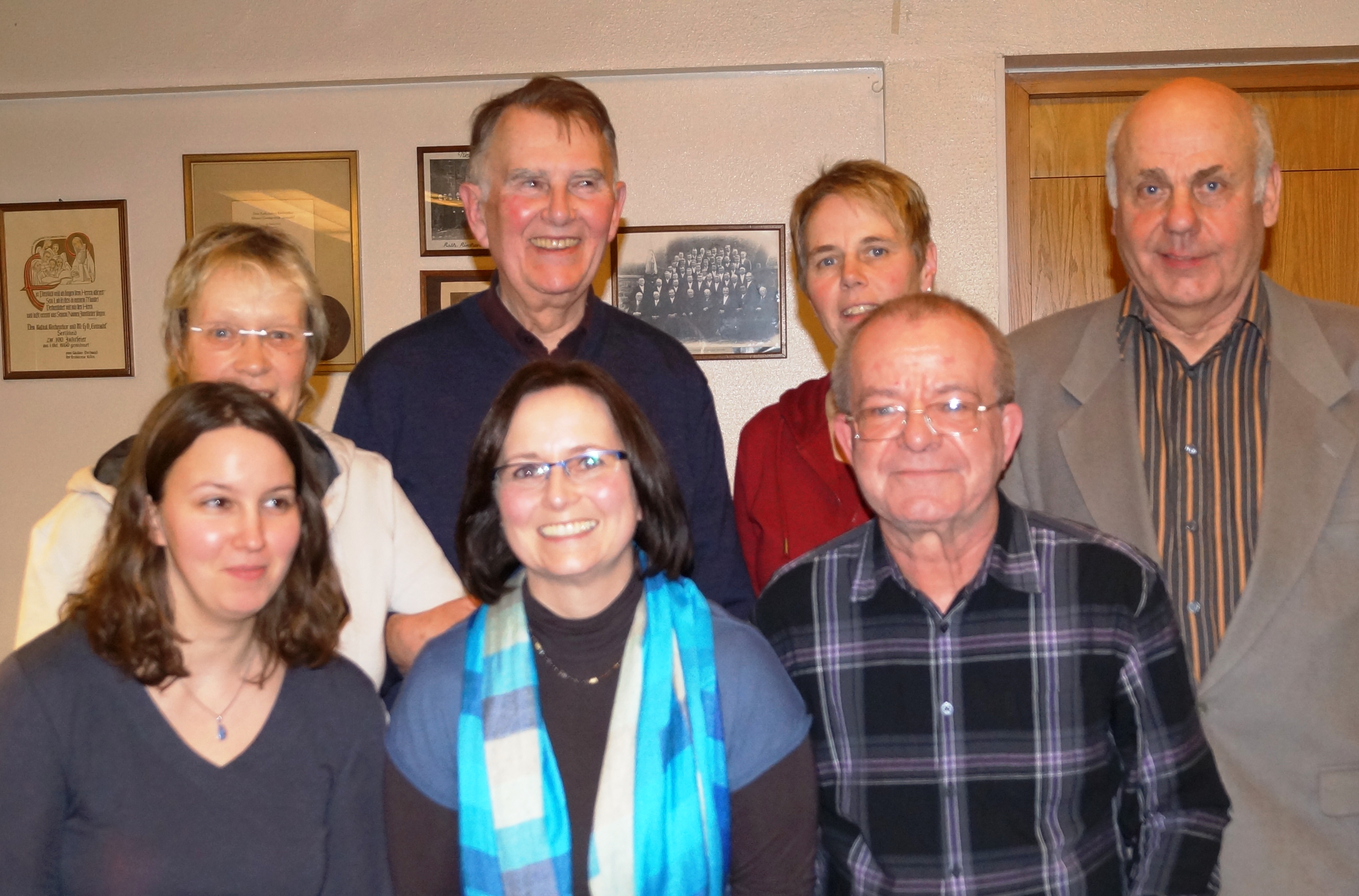 Bei der Mitgliederversammlung der Chorgemeinschaft St. Georg am 7.2.2014 stand die Neuwahl des Vorstandes an. Nach der einstimmigen Entlastung des alten Vorstandes dankte Günter Rotscheroth der scheidenden 1. Kassiererin Elisabeth Dastler und dem ebenfalls ausscheidenden 1. Notenwart Helmut Behrendt für die geleistete gute und immer äußerst zuverlässige Arbeit. Bei den anschließenden Wahlen wurde Rotscheroth erneut zum Vorsitzenden der Chorgemeinschaft gewählt. Ebenfalls wiedergewählt wurden Beate von Berg als stellvertretende Vorsitzende und 1. Schriftführerin, Resi Schreckenberg als 2. Kassiererin, Christiane Ludwig als 2. Schriftführerin und Mathilde Rühmenapf als 2. Notenwartin. Als 1. Kassierer wählte die Chorgemeinschaft Jozef Prensena und als 1. Notenwart Peter Karisch. Gemeinsam mit der Chorleiterin Dorothea Jakob wird sich der neue Vorstand zunächst intensiv um die Vorbereitung des Konzerts am 6 Juli 2014 kümmern.